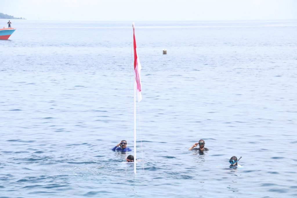 Lensakawanua.Com_Dalam agenda resmi Bupati Minahasa Selatan Franky Donny Wongkar, SH menjadi IRUP pada upacara Bendera bawah laut dalam rangka peringatan hari ulang tahun ke 77 Kemerdekaan Republik Indonesia di kabupaten Minahasa Selatan, berlokasi di Jalan Boulevard Amurang (15 Agustus 2022).