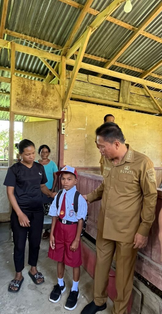 Bupati Minahasa Selatan Bpk. Franky Donny Wongkar, SH., menyerahkan bantuan untuk anak putus sekolah di desa Sulu Kecamatan Tatapaan