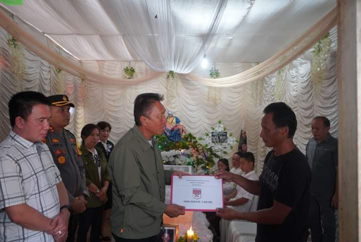 Pada kesempatan tersebut, Kapolres Minsel bersama Bupati Minsel Franky Donny Wongkar, SH menyerahkan bantuan dana duka untuk keluarga korban.