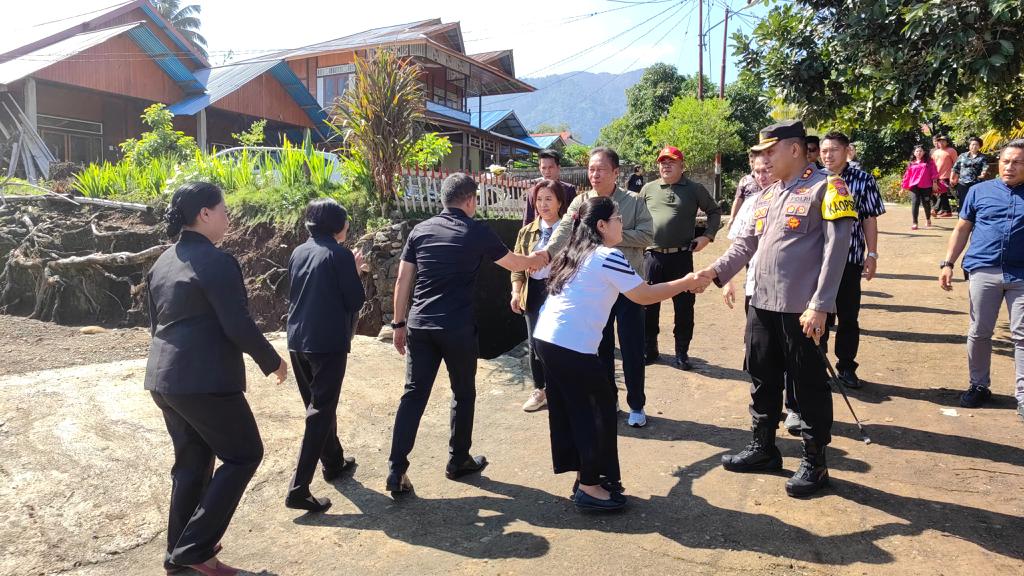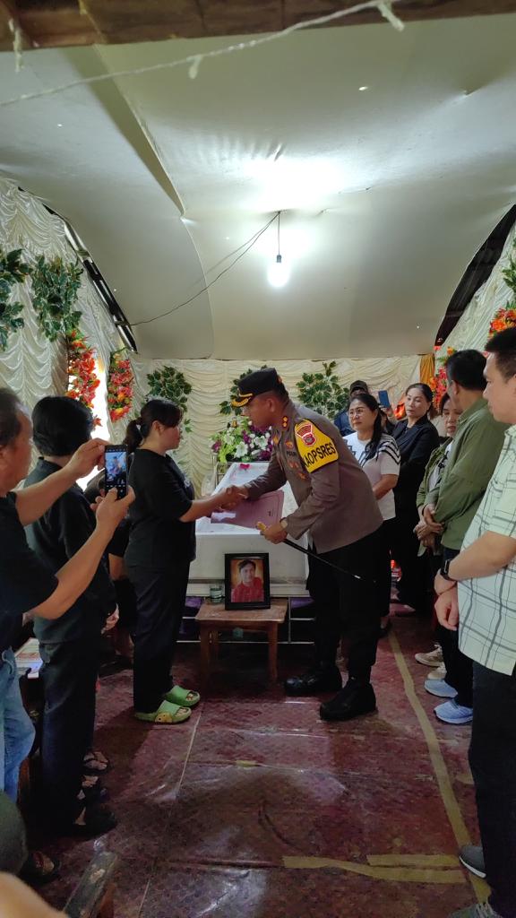 #Lensa Kawanua,- Kapolres Minsel AKBP Feri R. Sitorus, SIK, MH sambang duka di rumah kediaman korban kasus pembunuhan di Desa Kinamang, wilayah hukum Polsek Tompasobaru, Minggu (05/11/2023).