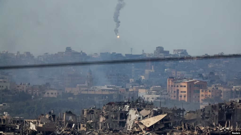FILE – Asap mengepul menyusul serangan Israel di dekat Rumah Sakit Indonesia yang kehabisan bahan bakar dan listrik, di Jalur Gaza utara, 12 November 2023. (Foto: REUTERS/Anas al-Shareef)