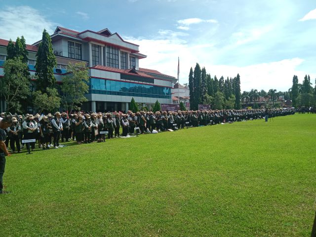 Lensa Kawanua. Com (Minsel). -Komisi Pemilihan Umum (KPU) Kabupaten Minahasa Selatan menggelar Pelantikan dan Apel Akbar Petugas Pemuktahiran Data Pemilih (Pantarlih) dan Pelaksanaan Coklit Serentak Pemilihan Gubernur dan Wakil Gubernur serta Bupati dan Wakil Bupati Tahun 2024 pada Kabupaten Minahasa yang digelar di Halaman kantor Bupati Minahasa Selatan, Senin (24/6/24).