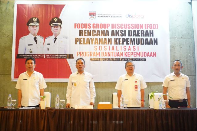 Pemerintah kabupaten Minahasa Selatan melalui Dinas Pemuda dan Olahraga Kabupaten Minahasa Selatan menggelar Focus Group Discussion (FGD) Rencana Aksi Daerah Pelayanan Kepemudaan, dan Sosialisasi Program Bantuan Kepemudaan berupa bantuan Biaya pendidikan (BPP) Minsel Maju Tahun 2024 Kepada Pemuda mahasiswa dalam penyelesaian akhir kuliah.