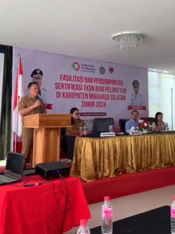 Lensakawanua.com -Bupati Minahasa Selatan Franky Donny Wongkar, SH., Membuka Kegiatan Fasilitasi dan Pendampingan Sertifikasi Tingkat Komponen Dalam Negeri (TKDN) Bagi Pelaku IKM di Kabupaten Minahasa Selatan Tahun 2024.