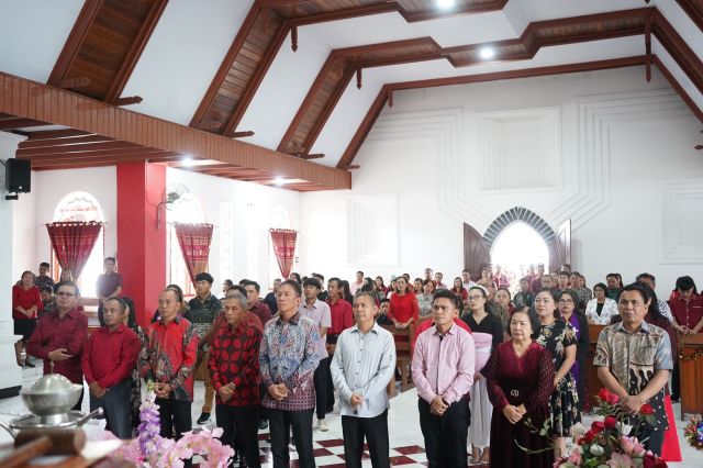 Bupati Minahasa Selatan Franky Donny Wongkar, SH., Pada hari Minggu, 21 Januari 2024 beribadah bersama dengan Jemaat Gereja KGPM Sidang Tiberias, Amurang, dan yang menjadi Khadim Ibadah Ketua Pimpinan Majelis Sidang KGPM Tiberias Amurang Bpk. Gembala Antonius Paparang, S.Th, MA.