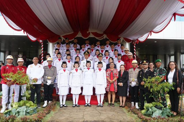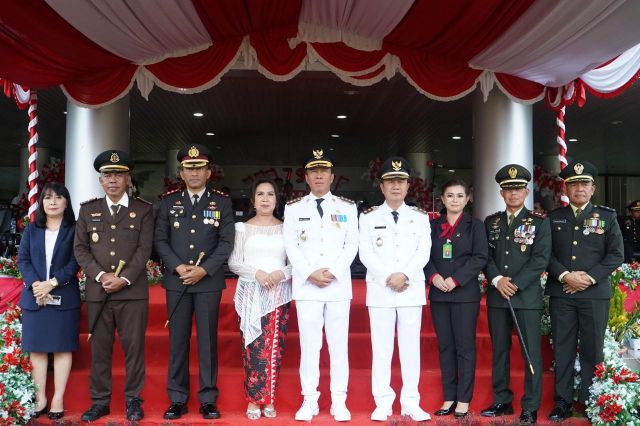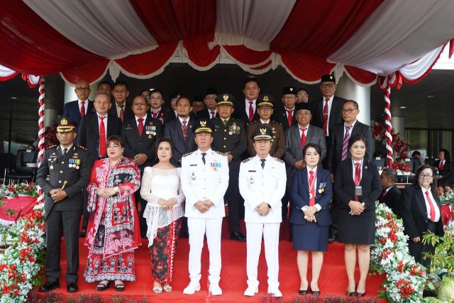 Peserta upacara dari TNI, Polri, para Camat, Lurah dan Hukum Tua, para ASN perutusan Perangkat Daerah dan Kecamatan, Taruna dan Korsik Politeknik Pelayaran Sulawesi Utara, serta perwakilan Siswa.(*Kris/Diskominfo/Adv)