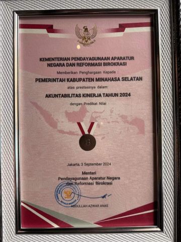 Kata dia, penghargaan ini juga sebagai bukti komitmen dan upaya Pemerintah Kabupaten Minahasa Selatan, dalam perbaikan akuntabilitas kinerja pemerintah sehingga membuahkan hasil positif untuk mendongkrak nilai SAKIP Kabupaten Minahasa Selatan yang selama bertahun-tahun sebelumnya merupakan terendah di Sulawesi Utara.