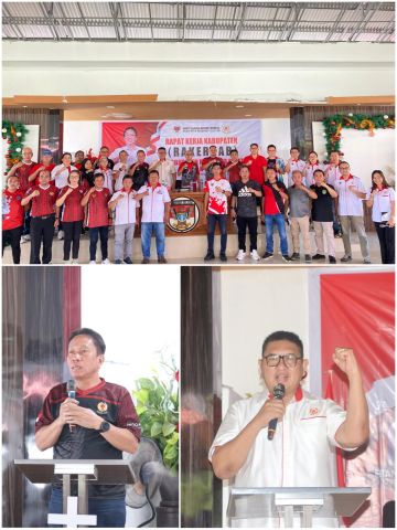 Wakil Bupati Minahasa Selatan Brigjen TNI (Purn) Theodorus Kawatu, SIP., yang juga Selaku Ketua Harian KONI Provinsi Sulawesi Utara saat membuka Rapat Kerja Kabupaten (RAKERKAB) KONI kabupaten Minahasa Selatan Tahun 2025 Menyampaikan bahwa Kiranya Kepada Seluruh Pengurus KONI Minahasa Selatan yang ada untuk tetap bersemangat membangun komitmen dalam memajukan prestasi olahraga daerah.
